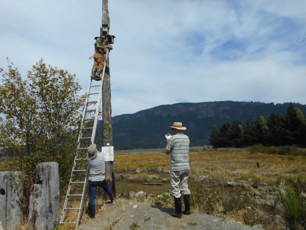 I reported in March on the hanging ofthe 27 new swallow boxes manufactured by Wes Heinrichs along the Cowichan RiverDyke trail. The boxes were attached to fence posts lining Blackley's farm.Peter Scheiler checked and cleaned the boxes single-handedly earlier in August,Thanks Peter! The results of the first year at this location: 26% (=7 boxes)successfully occupied and four boxes showing evidence of un-finished nests.Since this is a totally new location for swallows to find suitable nestingfacilities where none had been before, no better results could have beenexpected at this point. It remains to be seen whether swallows brought up thisyear on this site will return in 2020 to claim one of the available apartments.Wes Heinrichs has volunteered to build more boxes also for this location. Weare currently waiting for a permission to work on the new Cowichan River trail,that would start with broom removal in February 2020.
